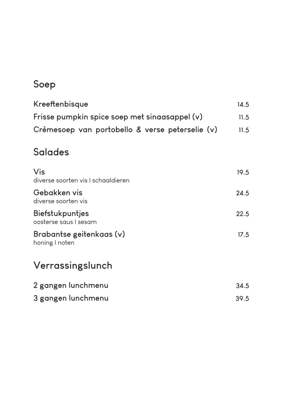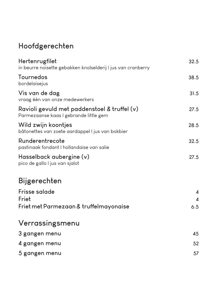 Onze menukaart
